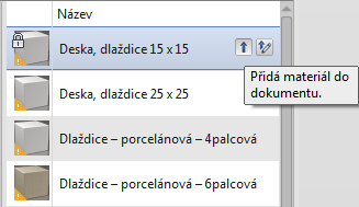 Chcete-li přidat materiál do aktuálního projektu, nejprve materiál najděte v existující knihovně a poté použijte jednu z těchto metod: