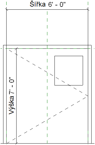 Do požárních dveří, které mají kótu s popiskem pro šířku, jste přidali pravoúhlé okno, které jste ale neokótovali.