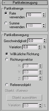 Mit dieser Option wird die Richtung der Partikel durch einen Vektor festgelegt, der mit den drei Zahlenauswahlfeldern "X", "Y" und "Z" definiert wird.