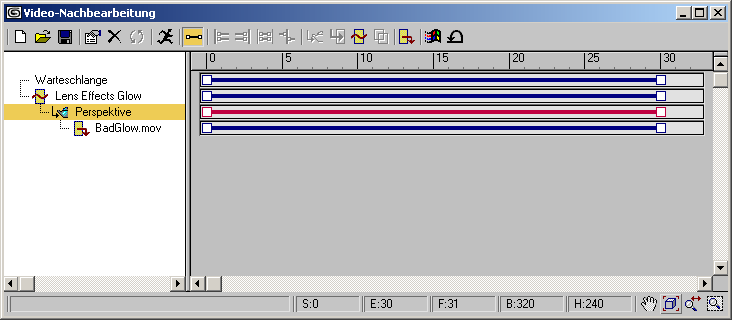Das Fehlschlagen einer Warteschlange der Video-Nachbearbeitung kann zwei Hauptgründe haben. Erstens können die Aktionen in der Warteschlange in der falschen Reihenfolge stehen und verschachtelt sein. Zweitens können die Bereichsleisten falsch positioniert sein und/oder überlappen.
