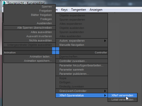 Beim Erstellen von XRef-Parametern verwenden Sie den Spuransicht - Kurven-Editor, um Parameterspuren als benutzerdefinierte Attribute zu publizieren. Die Parameter können animiert werden.