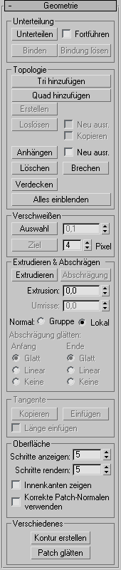 Eine detaillierte Beschreibung dieser Steuerelemente finden Sie unter Rollout Geometrie (Patch ).