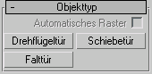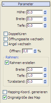 Dieser Bereich weist Steuerelemente für den Türpfostenrahmen auf. Obwohl Teil des Türobjekts verhält sich der Rahmen wie ein Teil der Mauer. Er bewegt sich nicht, wenn Sie die Tür öffnen oder schließen.