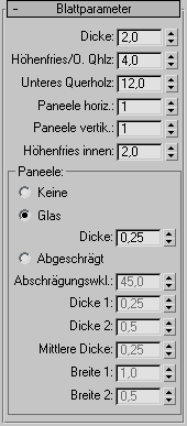 Die verbleibenden Zahlenauswahlfelder wirken sich auf die Abschrägung der Paneele aus.
