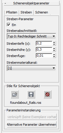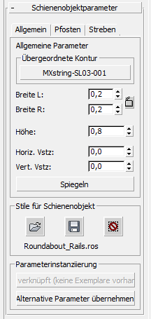 Wenn diese Option aktiviert ist, verwendet die Schiene die Pfosten-Geometrie. Wenn diese Option deaktiviert ist, hat die Schiene keine Pfosten.