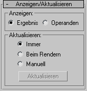 Diese Optionen geben an, wann die Anzeige aktualisiert wird. Normalerweise verwenden Sie diese Optionen, wenn Sie die Operanden des KonturZusammenführen-Objekts animiert haben und die Anzeige im Ansichtsfenster zu langsam ist.