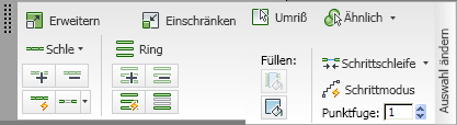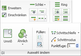 Die Gruppe "Auswahl ändern" bietet Hilfsmittel für das allgemeine Erweitern und Reduzieren von Unterobjektauswahlen sowie im Hinblick auf Schleifen und Ringe.