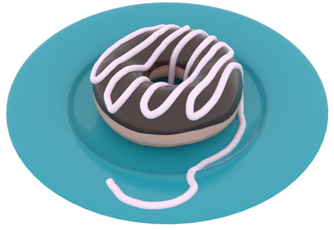 Sprühglasur durch Zeichnen eines Freihand-Splines, der auf zwei Objekte beschränkt ist: einen Ring und eine Platte.