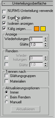 Anmerkung: Die übrigen Steuerelemente dieses Rollouts haben nur dann Einfluss, wenn die Option "NURMS-Unterteilung verwenden" aktiviert ist.