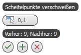 Zeigt die Anzahl der Scheitelpunkte vor und nach dem Verschweißen an.