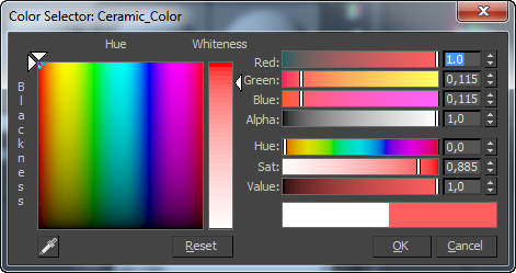 Diese Version der Farbauswahl wird auch beim DirectX-Shader-Material angezeigt.
