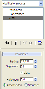 Bei Auswahl der Option "Ergebnis" wird der Eintrag "ProBoolean" im Modifikatorstapel aktiviert.