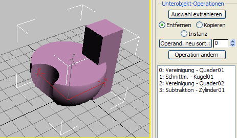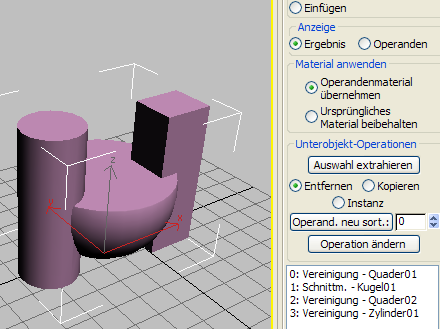 Sie können die Operanden wie alle anderen Objekte in 3ds Max auf der Unterobjektebene transformieren und animieren, unabhängig davon, ob sie sichtbar sind oder nicht.