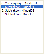 Daraufhin erfolgt die Vereinigung (Hinzufügung) des kleinen Quaders mit der Schnittfläche der Kugel und des größeren Quaders. Auch hier erhält das Ergebnis die Farbe des ursprünglichen Objekts.