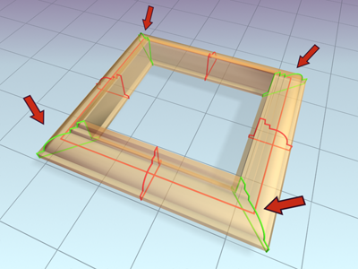 Rahmen extrudiert mit deaktivierter Option "Konstanter Querschnitt"