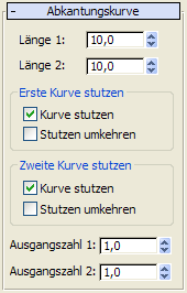 In diesen beiden Bereichen können Sie festlegen, wie die übergeordneten Kurven gestutzt werden. Die Steuerelemente sind für beide Bereiche identisch. "Erste" und "zweite" beziehen sich auf die Reihenfolge, in der Sie die übergeordneten Kurven gewählt haben.