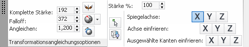 Scheitelpunkte außerhalb des Kreises für "Komplette Stärke", aber innerhalb des Kreises für "Falloff" (siehe unten), werden allmählich langsamer bewegt.