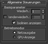 Ist diese Option aktiviert, wird das Netz bis zu einer bestimmten Grenze, die entsprechend dem Ansichtsabstand und dem Max. Wiederholungswert berechnet wird, im aktiven Ansichtsfenster unterteilt. Wert für die Wiederholungen. Diese Option ist nur verfügbar, wenn die GPU-Anzeige im Rollout Allgemeine Steuerungen aktiv ist.