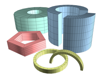 Legt die Anzahl der Flächen um die Außenseite des Rohrs fest. Hohe Werte erzeugen beim Schattieren und Rendern echte Kreise, wenn die Option "Glatt" aktiviert ist. Niedrige Werte erstellen regelmäßige, mehreckige Objekte, wenn "Glatt" deaktiviert ist.