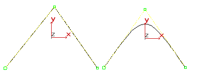Sie können sich eine Punktkurve oder -oberfläche auch als von ihren Punkten abhängig vorstellen. Mithilfe der Schaltfläche "Kurve umwandeln" können Sie eine Punktkurve oder -oberfläche in eine KS-Kurve bzw. -Oberfläche ändern und umgekehrt.