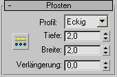 Steuert das Profil, die Tiefe, die Breite, die Verlängerung und den Abstand zwischen den Pfosten. Sie legen die gewünschte Anzahl der Pfosten mithilfe der Schaltfläche "Pfostenabstand" fest.