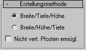 • Breite/Höhe/Tiefe Funktioniert wie die Option Breite/Tiefe/Höhe, außer dass mit den letzten beiden Punkten zuerst die Höhe und dann die Tiefe erstellt wird.