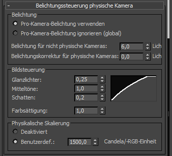Legt die Belichtung für physische Kameras mit einem Belichtungswert und einer Farbreaktions-Kurve fest.