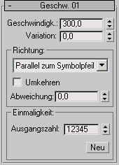 Die Verwendung der Funktion "Umkehren" entspricht der Multiplikation des Geschwindigkeitswerts mit -1. Diese Option ist nicht verfügbar, wenn die Option "Zufällig 3D" oder "Zufällig horizontal" gewählt wurde.