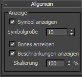 Das Rollout Allgemein enthält anzeigebezogene Einstellungen für Stoffpuppenobjekte.