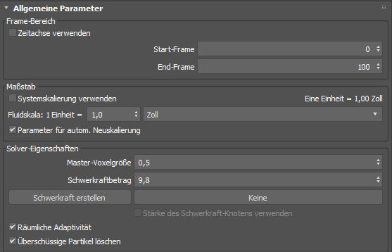 Achten Sie darauf, diese Einstellung nicht zu sehr zu erhöhen, insbesondere für Werte nahe 1,0. Dies kann sonst zu unnötig langen Berechnungen führen. Beachten Sie auch, dass Entfernungen in Voxellängen gemessen werden. Das bedeutet, dass eine geringere Master-Voxelgröße für Partikel mit einer bestimmten Geschwindigkeit möglicherweise zusätzliche Iterationen auslöst.