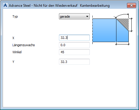 Mithilfe der Parameter auf dieser Registerkarte können Sie die Größe der Fase ändern.