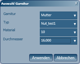Nach dem Definieren der neuen Muttern- und Unterlegscheibentypen: