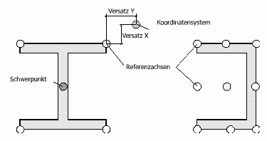 Die standardmäßige Einfügeachse (Systemlinie) eines Trägers liegt im Schwerpunkt.