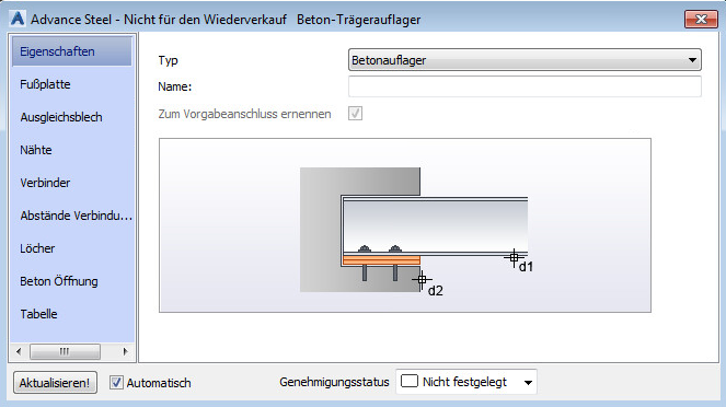 So erstellen Sie einen der beiden Anschlüsse zwischen einem Stahlelement und einem Betonelement: