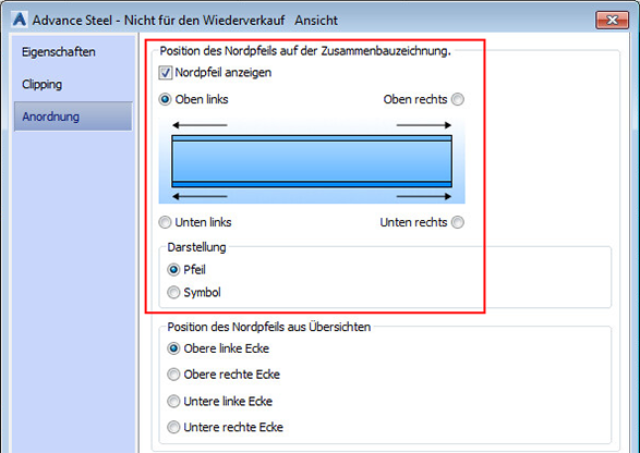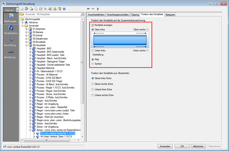 Für Übersichtszeichnungen können Sie die Nordpfeile durch Konfigurieren des Zeichnungsstils anzeigen.