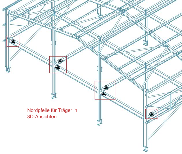Um die Ausrichtungsmarkierungen zu verwenden, muss der Nordpfeil im Modell erstellt werden.