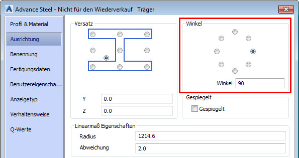 Anmerkung: In Advance Steel befinden sich die Fassadenbleche in der Kategorie Profile. Profile können gerade oder gebogen sein oder aus einer Polylinienform erstellt werden. Das gewünschte Fassadenprofil oder ein Paneel aus einem Katalog eines Herstellers wie Arval, Angastiniotes, Bacacier, Kovove, Canam, Fisher, Hoesch, Kinhspan, Linadb, Metecno, Montana, Megaprofil, Rukki, Euroclad, Vikam, Vulcraft usw. kann im Dialogfeld Advance Eigenschaften ausgewählt werden.