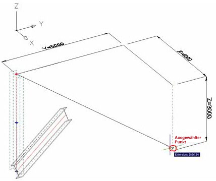 - Wählen Sie im Arbeitsbereich einen Punkt mit den Koordinaten 4000, 5000, -3000 relativ zur Oberkante des Trägers aus. In diesem Fall wird die Oberseite des Trägers um 4000 Einheiten in Richtung der X-Achse verschoben.