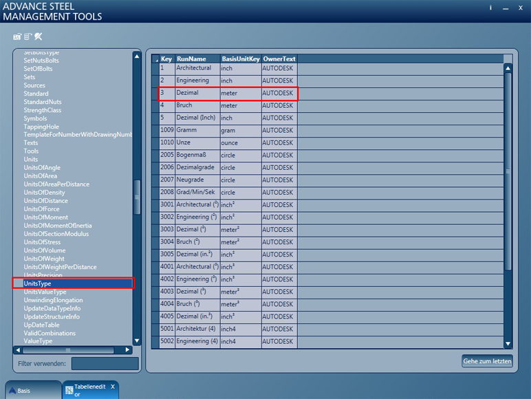 Schlüssel 3 aus der Tabelle UnitsType in der Datenbank AstorBase: Dezimal.