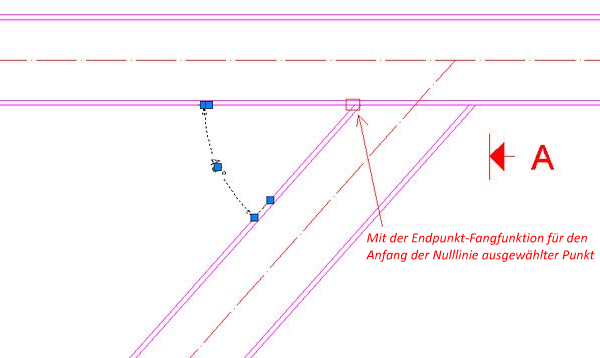 Winkelbemaßung: Die Bedingung besteht darin, einen Endpunktfang für den Start der 0-Linie zu verwenden, während das Ende der 0-Linie und die Maßpunkte mithilfe der Fangfunktion für Endpunkt oder Nächster Punkt erstellt werden kann.