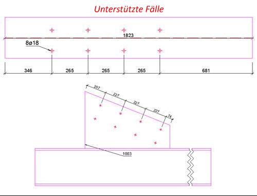 Sind an einem Endpunkt mehrere Löcher/Schrauben vorhanden, werden beliebige unterstützt. Bei einer Aktualisierung bleibt die Maßlinie an diesem Loch.
