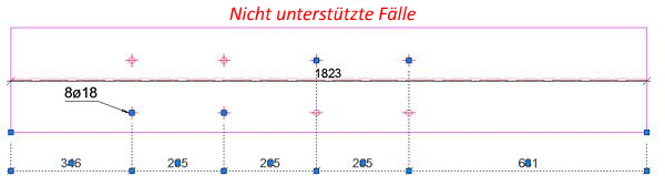 Außerdem muss die Bemaßungsrichtung mit der Richtung des Schrauben-/Lochbilds übereinstimmen. Andernfalls werden die Zwischenpunkte während der Aktualisierung entfernt.
