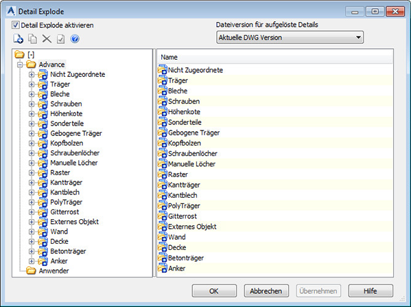 . Das Dialogfeld Detail Explode wird geöffnet.
