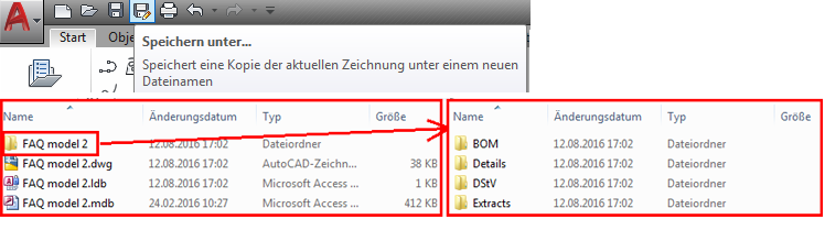 Nachdem Sie diese Option aktiviert haben, können Sie das Modell mit dem Befehl Speichern unter speichern. Alle Informationen, die in den Unterordnern des Modells vorhanden sind, werden am neuen Speicherort gespeichert.