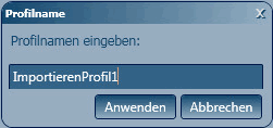 Um das neue Profil zu importieren, wird die Option Datei importieren verwendet. Die XML-Datei wird ausgewählt, und die Option "Öffnen" wird aufgerufen. Dann wird der Name des importierten Profils eingegeben.