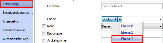 *Um Elemente einer Ebene zuzuweisen, wählen Sie im Dialogfeld Eigenschaften des jeweiligen Elements auf der Registerkarte Benennung im Feld Ebene die gewünschte Ebene aus.