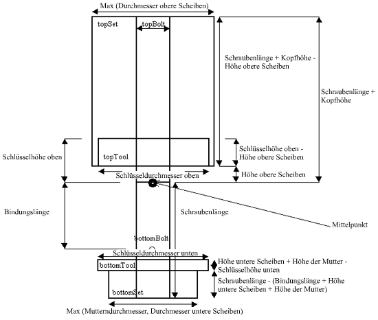 Die Bemaßungen (Höhe, Durchmesser) der Unterlegscheiben und Muttern befinden sich in AstorBase - SetNutsBolts und für das Werkzeug in AstorBase - Werkzeuge. Diese Bemaßungen hängen von der Definition der Schrauben (AstorBase - SetOfBolts) ab.