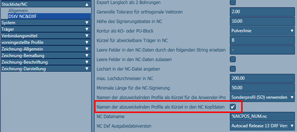 | %ProfCode | Kürzel: Hierfür wird der im Kürzel für abgewickelte Träger in der NC-Voreinstellung verwendete Wert gelesen. |