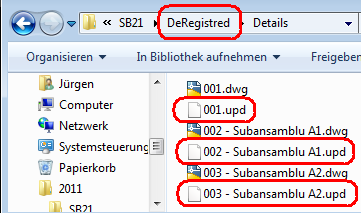 Wenn die Registrierung eines Details aufgehoben wird, wird es automatisch mit der .upd-Datei in den Ordner DeRegistered verschoben.