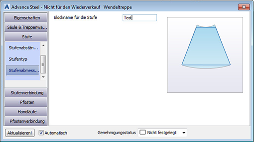 Advance Steel ermöglicht das Hinzufügen von benutzerdefinierten Stufen zum Wendeltreppen-Makro.